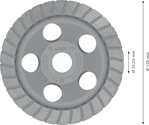 Specificaties: Bosch 1x PRO Multi Material turboslijpkoppen voor asgat 22,23 en betonslijpmachines (voor Beton, Betonnen bouwsteen, Ø 125 mm, Professional Accessoires Betonslijper)