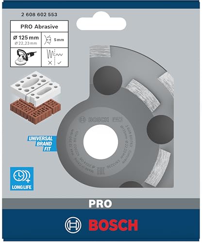 Bosch 1x PRO Abrasive diamantslijpkoppen voor asgat 22,23 en betonslijpmachines (voor Kalk- en zandsteen, Baksteen, Ø 125 mm, Professional Accessoires Betonslijper)